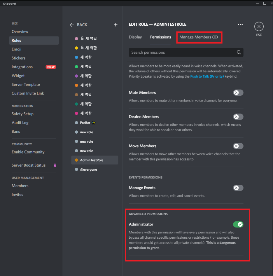 - 봇에게 Administrator 권한 부여
